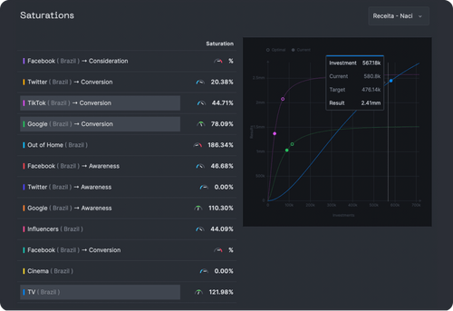 Check the saturation level for each media investment