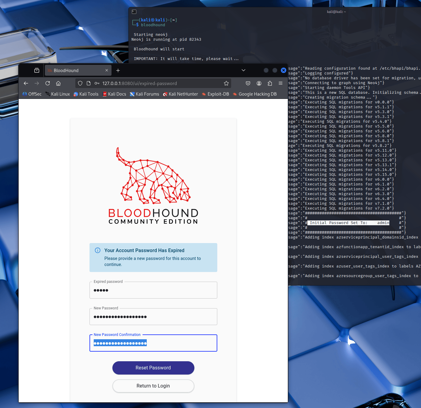 You can finally run bloodhound with the default credentials. You will be asked to set a new secure password.