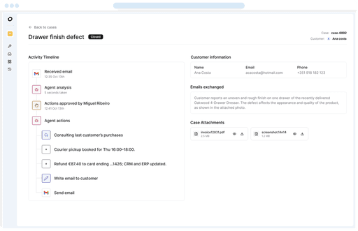 Manage, review, and approve cases alongside AI Co-workers — directly in the inbox where your team already works.