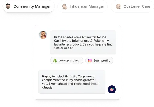 Not just AI. Your AI. Our copilot agents sound like your best community manager—because they’re trained on your tone, content, customer history, and context. Consistent. Human. On-brand.