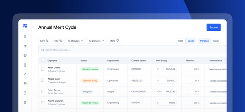 Deliver your next merit cycle on time and on budget with elegant workflows that allow you to manage, drive, and analyze pay decisions in real-time.