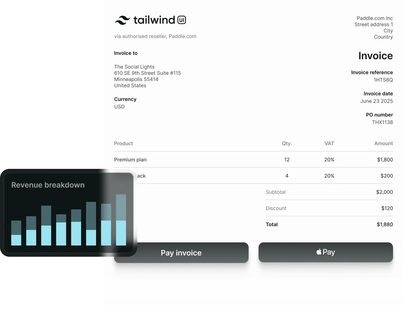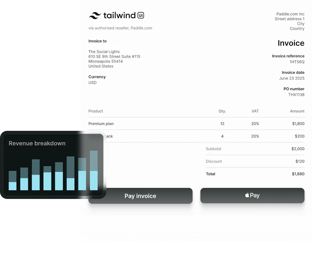 Create and send invoices easily. Use advanced features and APIs to automate your invoicing, with Paddle's online invoice payment system.
