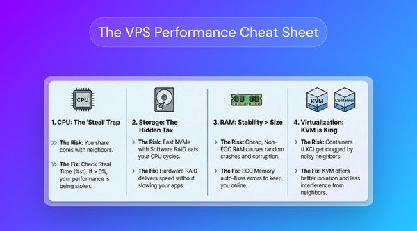 Our intention is to give users the knowledge to focus on the hardware they're actually paying for rather than the marketing promises of shady providers. That starts with understanding what factors influence VPS performance and when they're important.