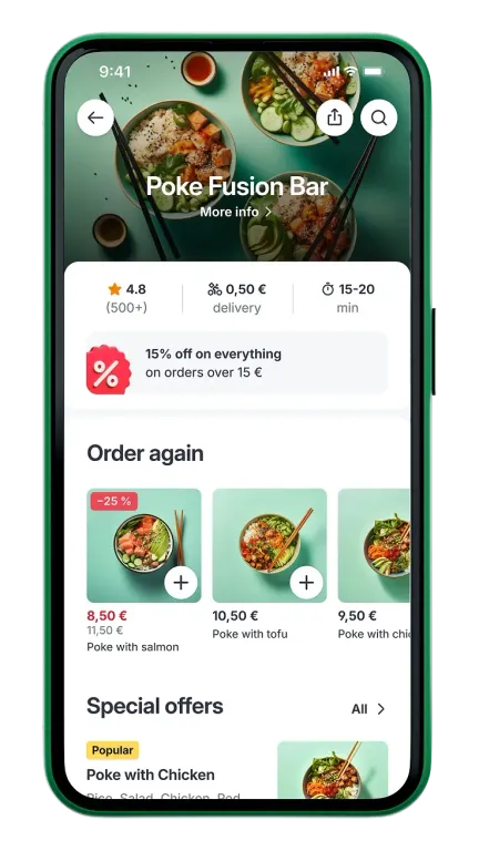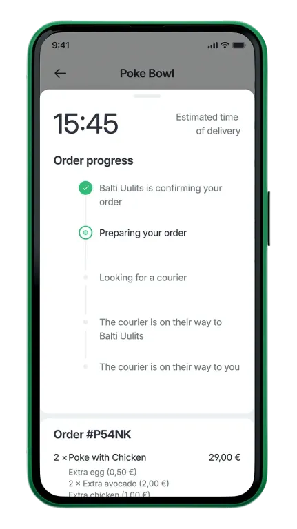 Tap, tap, done! Place the order with just a few clicks and pay with your preferred method — cash, card or Bolt balance.