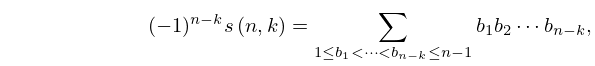 denotes the Stirling number of the first kind: times the number of permutations of with exactly cycles. See Table 26.8.1.