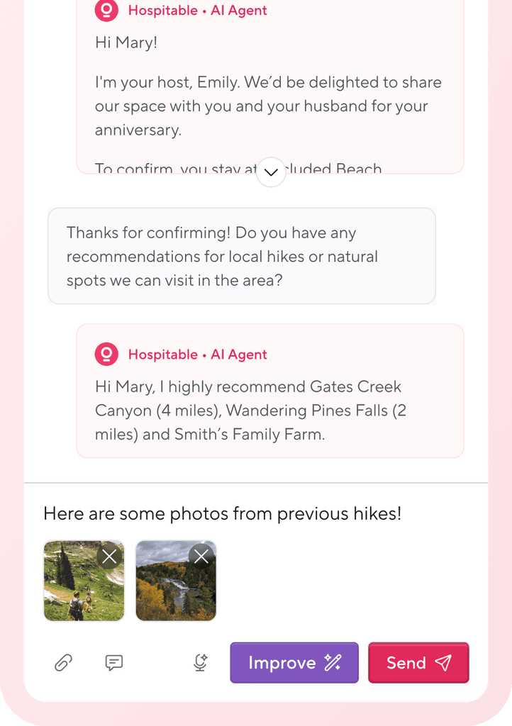 AI answers for you in your unique tone or offers a ready-to-send draft, handling guest inquiries 24/7 while you focus on hosting.