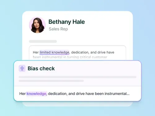 Get real-time recommendations to improve the quality of your performance reviews or feedback with checks for grammar, clarity, and bias.