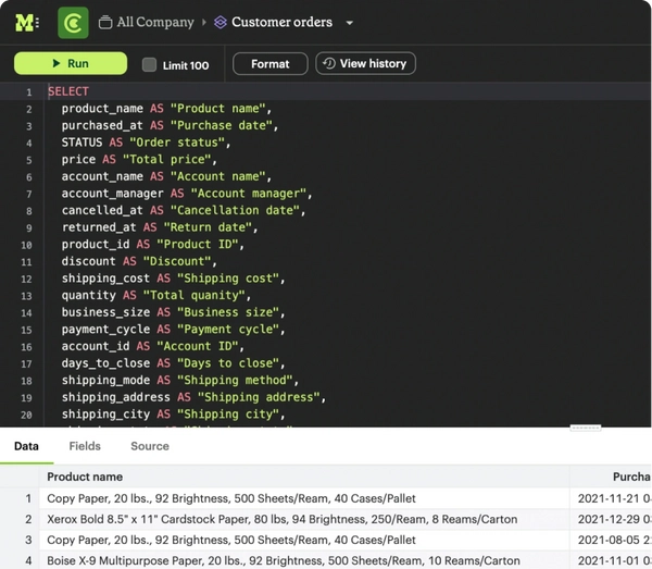Dive right into your data using SQL and rapidly iterate through queries to deliver results.
