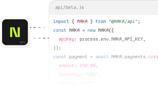 NAKA is a financial technology platform that provides programmable payment and settlement infrastructure. We help businesses move and settle value globally using modern digital rails, without needing to become a bank.