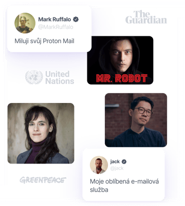 Službu Proton Mail si s důvěrou vybírají různé subjekty, od redakcí, aktivistů a mezinárodních organizací až po akademické pracovníky, držitele Nobelovy ceny a filmové postavy. Ti všichni ji totiž považují za řešení pro bezpečnou a soukromou komunikaci. Připojte se k více než 100 milionům lidí z celého světa, kteří zastávají názor, že jejich soukromí na internetu stojí za to chránit.