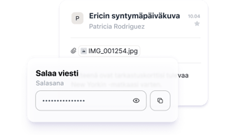 Voit määrittää sähköposteihisi salasanan ja erääntymispäivän, jolloin voit lähettää luottamuksellisia tietoja turvallisesti yhteyshenkilöillesi, vaikka heillä ei olisi Proton Mailia.