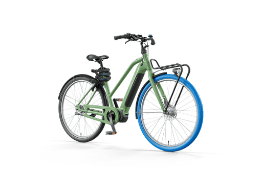 Alle fietsen zijn voorzien van de iconische blauwe band.